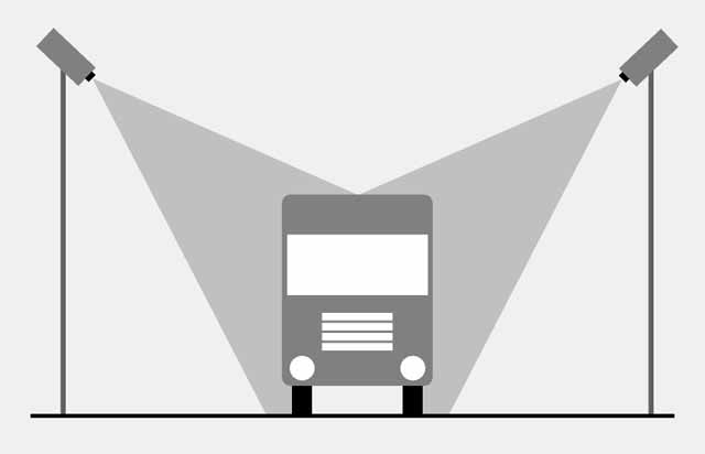 PYROLINE FireCheck熱像測溫系統用于交通管理監控安裝方式。 路過的車輛由兩側的紅外掃描熱像儀PYROLINE監視。